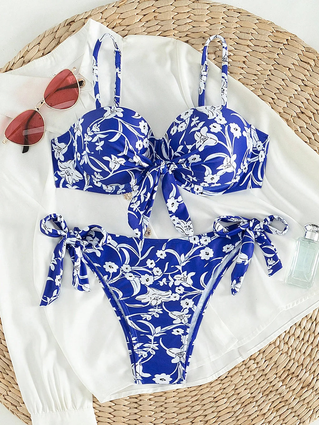 Peças ForradasSwim Vcay Conjunto de Maiô Bikini Separado com Estampa Floral, Bojo e Push-Up para a Praia, Carnaval