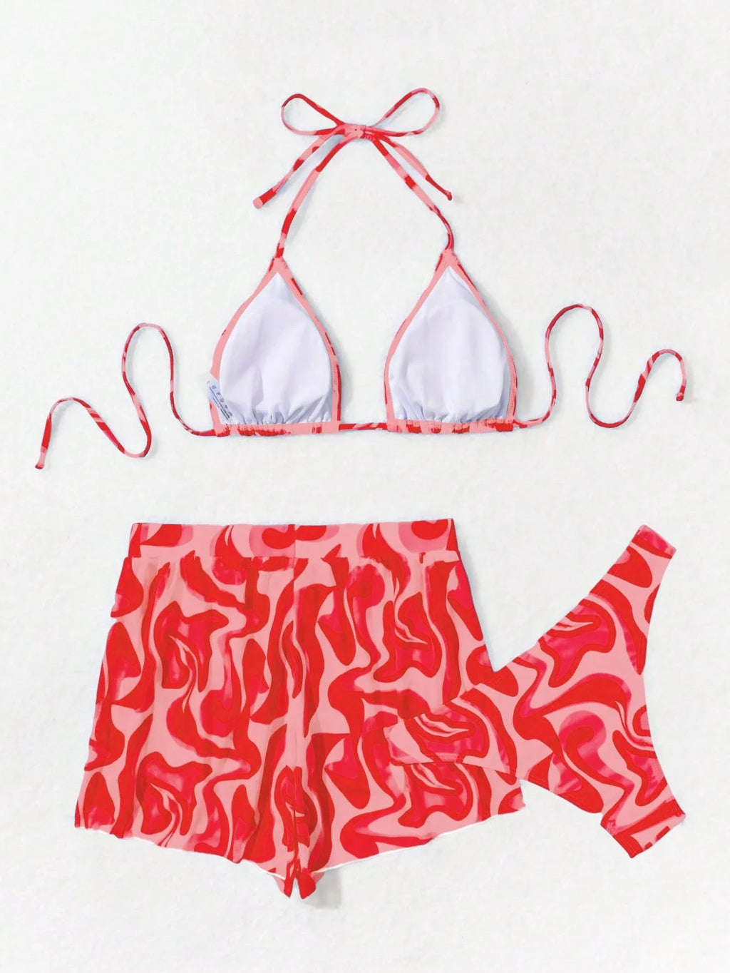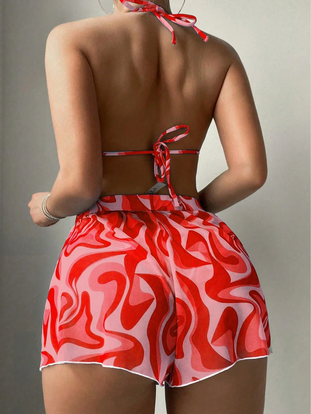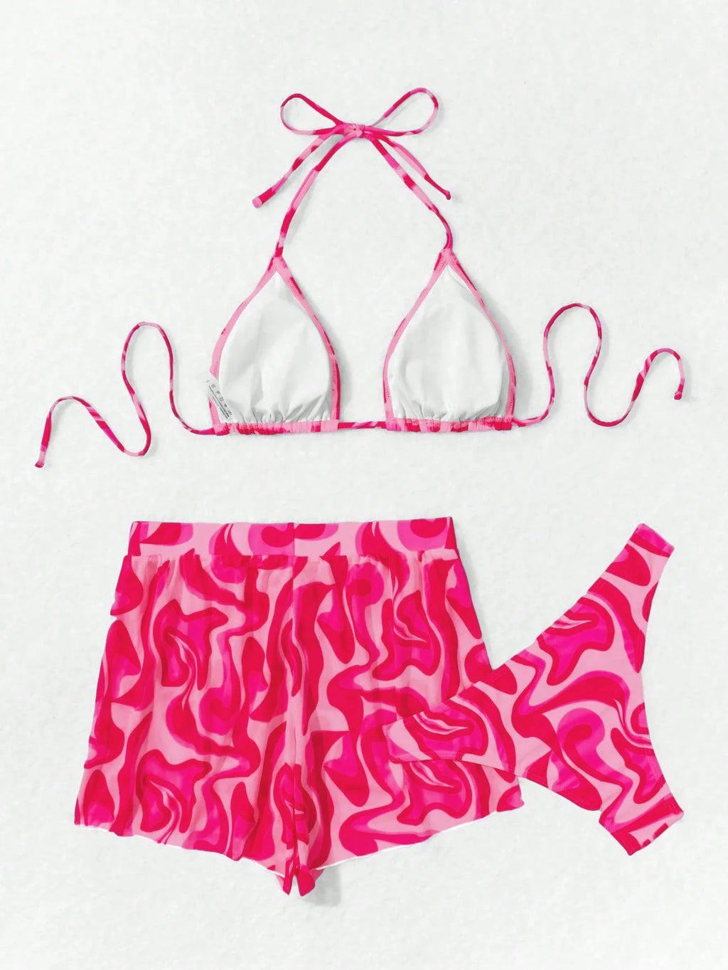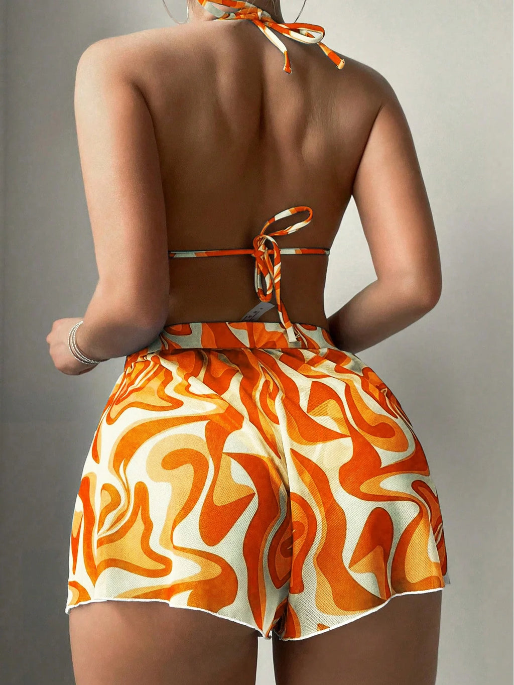 Swim Vcay 3 peças/Conjunto Maiô Bikini Impresso Aleatório para Praia/Férias