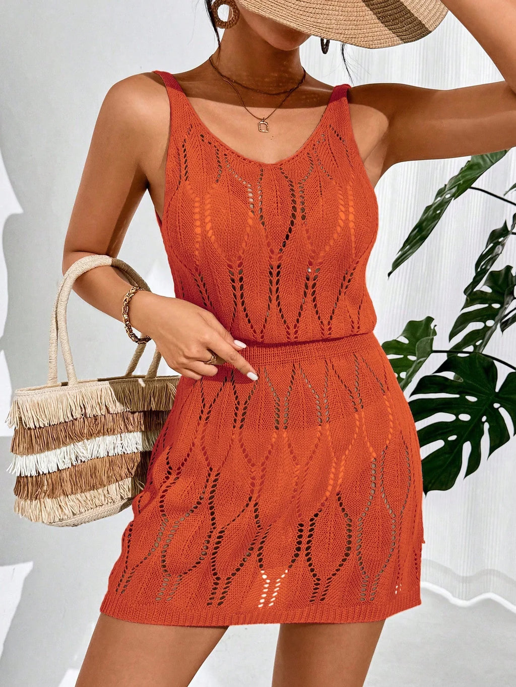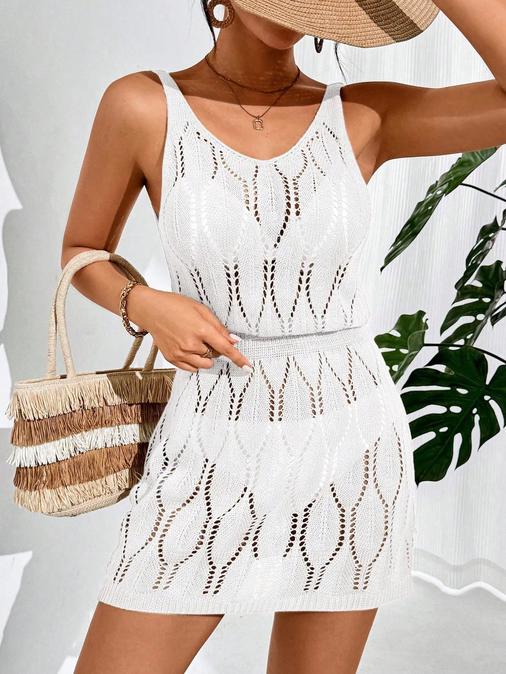 Peças ForradasSwim Vcay Vestidos de Praia para Mulheres, Decote Redondo, Costas Descubertas, Cor Sólida, Casual, Capa para o Verão