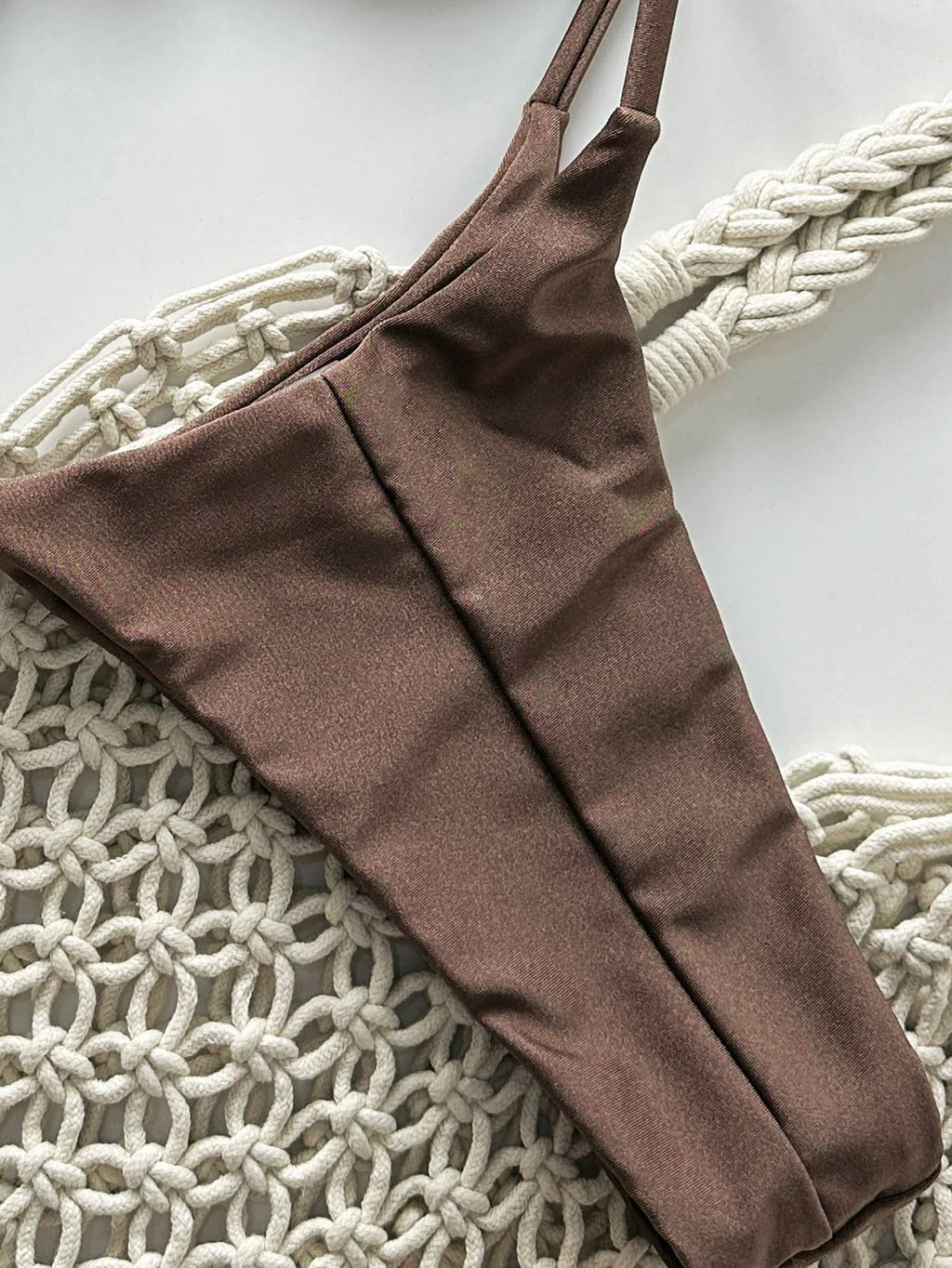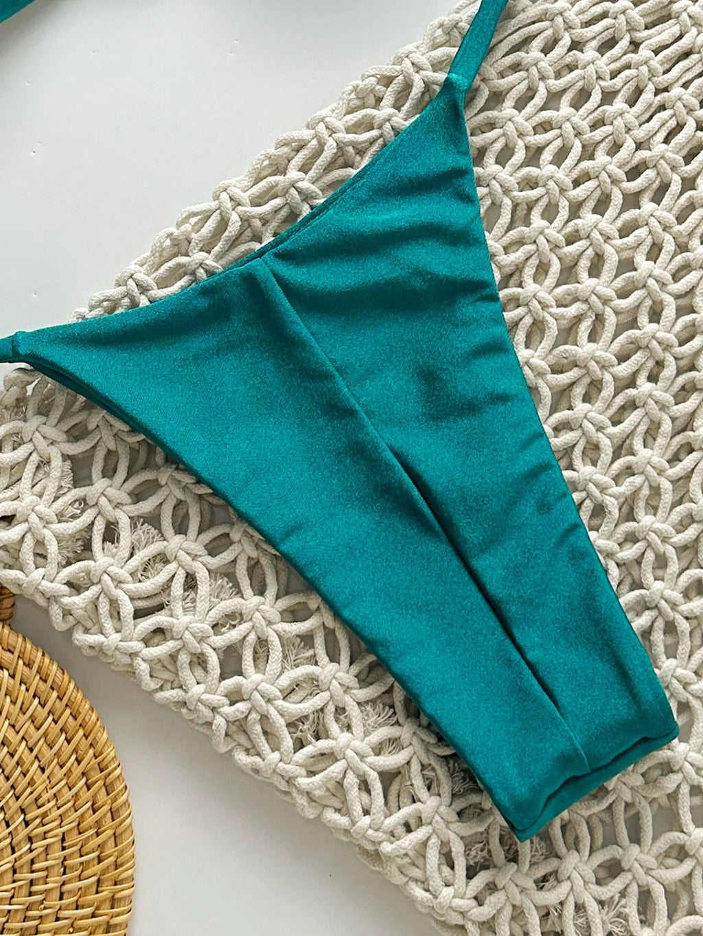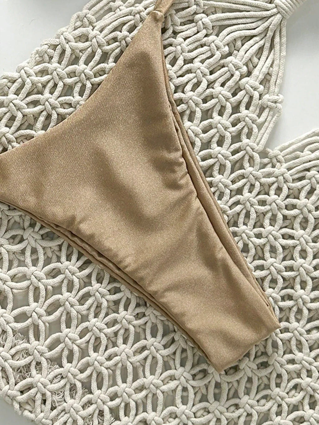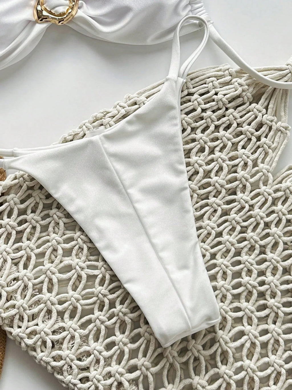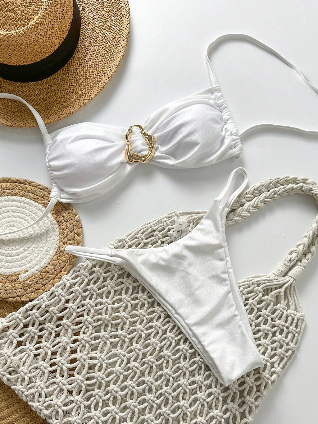 SHEIN Swim Conjunto de Maiô Bikini Feminino Strapless de Verão Solid Color com Amarração e Decoração Metálica, Sexy