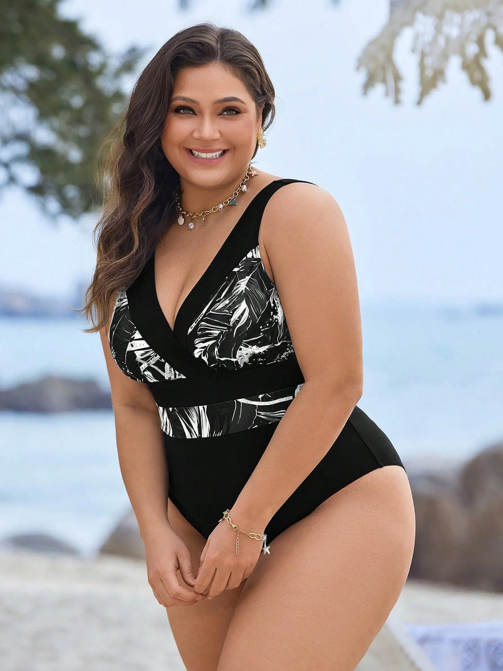 Peças ForradasSwim Lushoire Maiô Plus Size com Estampa de Praia e Colorblock